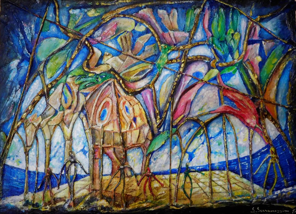 Galleria L’inquietudine nella cattedrale gotica Date: dicembre 2017Author: S.Scaramozzino 0 Commenti La composizione di forme, colori raffigurano l’ambiente architettonico e l’orizzonte concavo del mare. Le sembianze delle persone vivono tormenti. I colori allietano la fiducia Diversi materiali e i toni di colore modellano la raffigurazione. Condividi: Fai clic qui per condividere su LinkedIn (Si apre in una nuova finestra) LinkedIn Fai clic per condividere su X (Si apre in una nuova finestra) X Fai clic per condividere su Facebook (Si apre in una nuova finestra) Facebook Fai clic per condividere su WhatsApp (Si apre in una nuova finestra) WhatsApp Mi piace Caricamento... Correlati